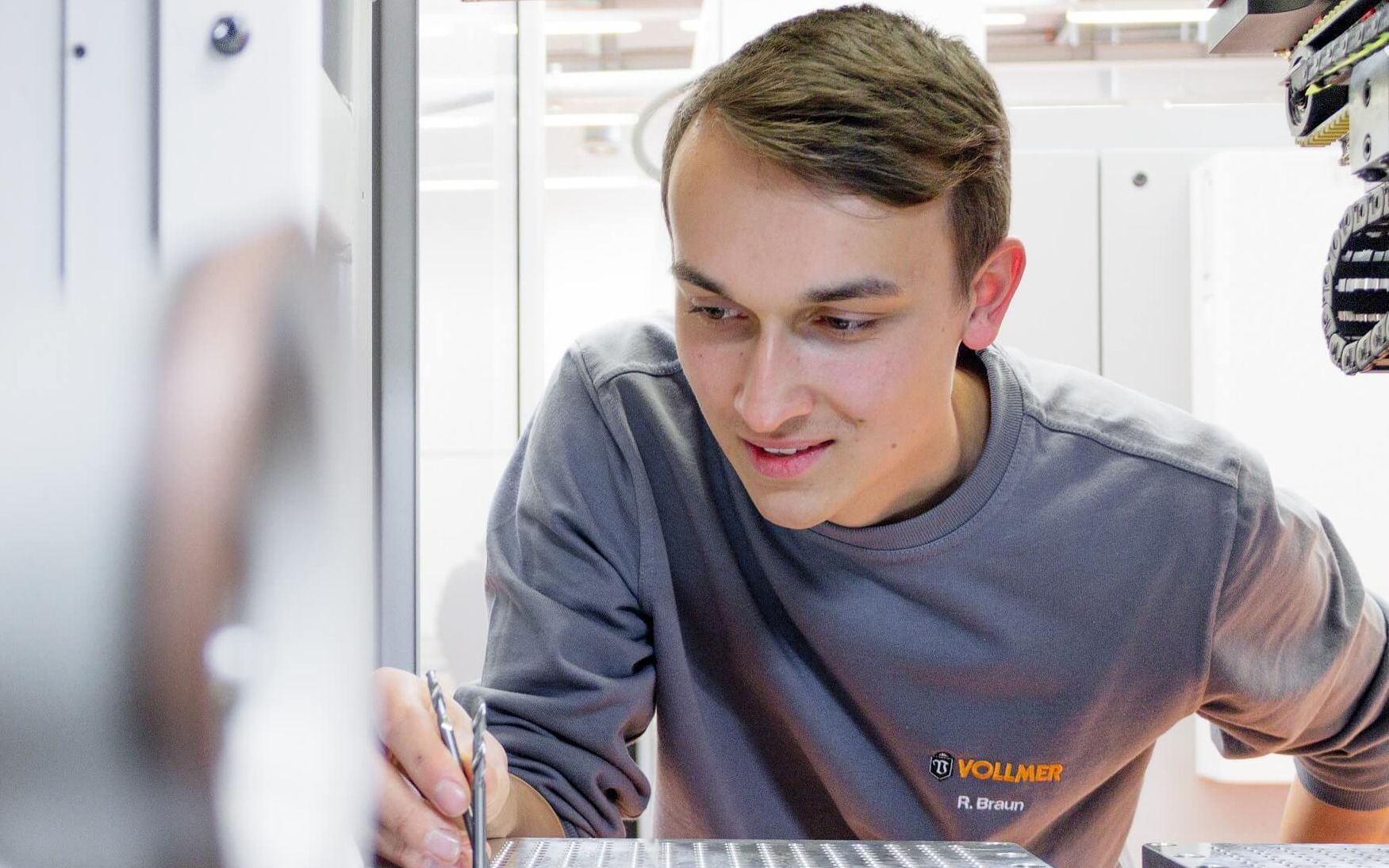 zur ÜbersichtAls Spezialist für Maschinen zur Bearbeitung von Präzisionswerkzeugen sind die VOLLMER Werke in Biberach bekannt dafür, es ganz genau zu nehmen. Einer, der das bereits in seinen jungen Jahren mit Leidenschaft und Perfektion meistert, ist Raphael Braun. Er hat in diesem Jahr seine Ausbildung zum Präzisionswerkzeugmechaniker bei VOLLMER mit herausragendem Erfolg abgeschlossen: Er wurde Kammersieger beim Leistungswettbewerb des Deutschen Handwerks und belegte sogar den zweiten Platz beim Landeswettbewerb.