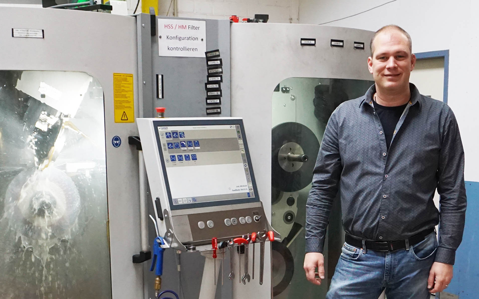 „Wir sind in der Lage, HW-Einwegkreissägen, die ansonsten entsorgt werden müssten, für einen zweiten Lebenszyklus nachzuschärfen“, sagt Daniel Katthöfer. „Wir erzielen dabei eine rund 90-prozentige Sägeleistung gegenüber eines Neublattes – und das bei etwa der Hälfte der ursprünglichen Anschaffungskosten. Dadurch senken unsere Kunden nicht nur ihre Betriebskosten, sondern sie tragen darüber hinaus zu mehr Umweltschutz und Nachhaltigkeit bei.“