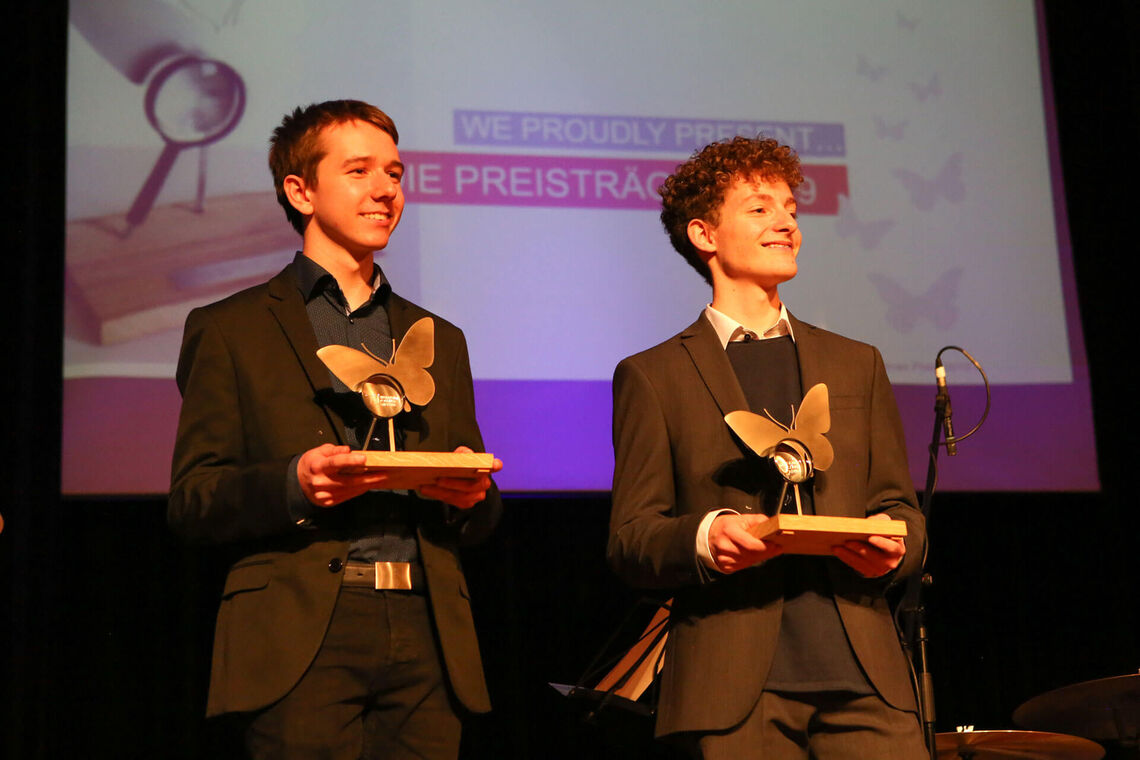Den mit 2.500 Euro dotierten „Preis für Jugendliche“ erhielten jeweils Rudolf Erdmann Mey aus Mittelbiberach und Benno Hölz aus Ochsenhausen. Beide haben sich außerhalb des Unterrichts nachhaltig im Bereich Mathematik, Informatik, Naturwissenschaften und Technik (MINT) engagiert und begeisterten die Juroren mit einem Gesamtpaket aus gesundem Ehrgeiz, Engagement, Wissensdurst und ihrem offenen Auftreten.