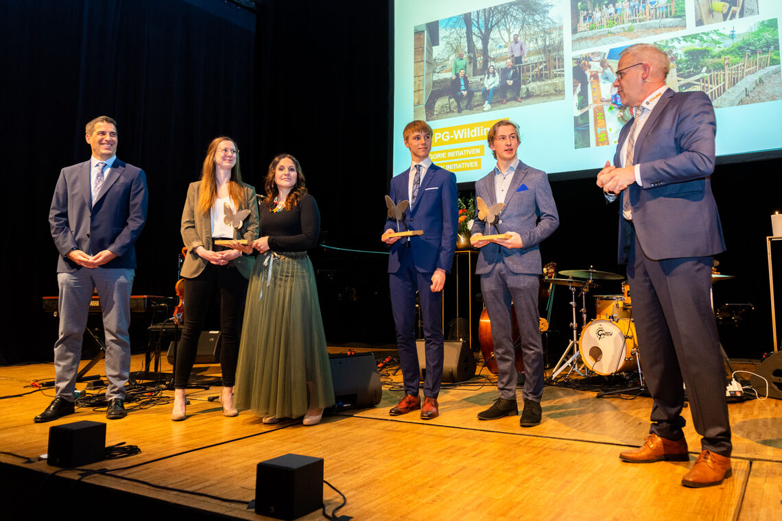 In der Kategorie Initiative wurden „Die Wildlinge“ vom Pestalozzi-Gymnasium ausgezeichnet. Die AG richtet sich an Schülerinnen und Schüler der fünften und sechsten Klasse und findet seit 2021 wöchentlich statt – rund 40 Kinder nehmen regelmäßig teil. In der AG werden naturwissenschaftliche Grundkenntnisse aus den Disziplinen Biologie, Chemie oder Physik altersgerecht vermittelt – dabei nutzen die AG-Leiterinnen Lisa Heinkele und Melanie Higel das Schulgelände, welches auf diese Weise nach und nach renaturiert und biodivers gestaltet wird. Dabei kommen natürlich die wissenschaftlichen Grundlagen, altersgerecht aufbereitet und erlebbar gemacht, nicht zu kurz. Das Ergebnis ist ein vielseitig genutztes Gelände mitten in Biberach, das Futter und Rückzugsmöglichkeiten für zahlreiche Tierarten bietet und eine Gelegenheit für die Schülerinnen und Schüler darstellt, die Themen Nachhaltigkeit und Umwelt zu erleben.