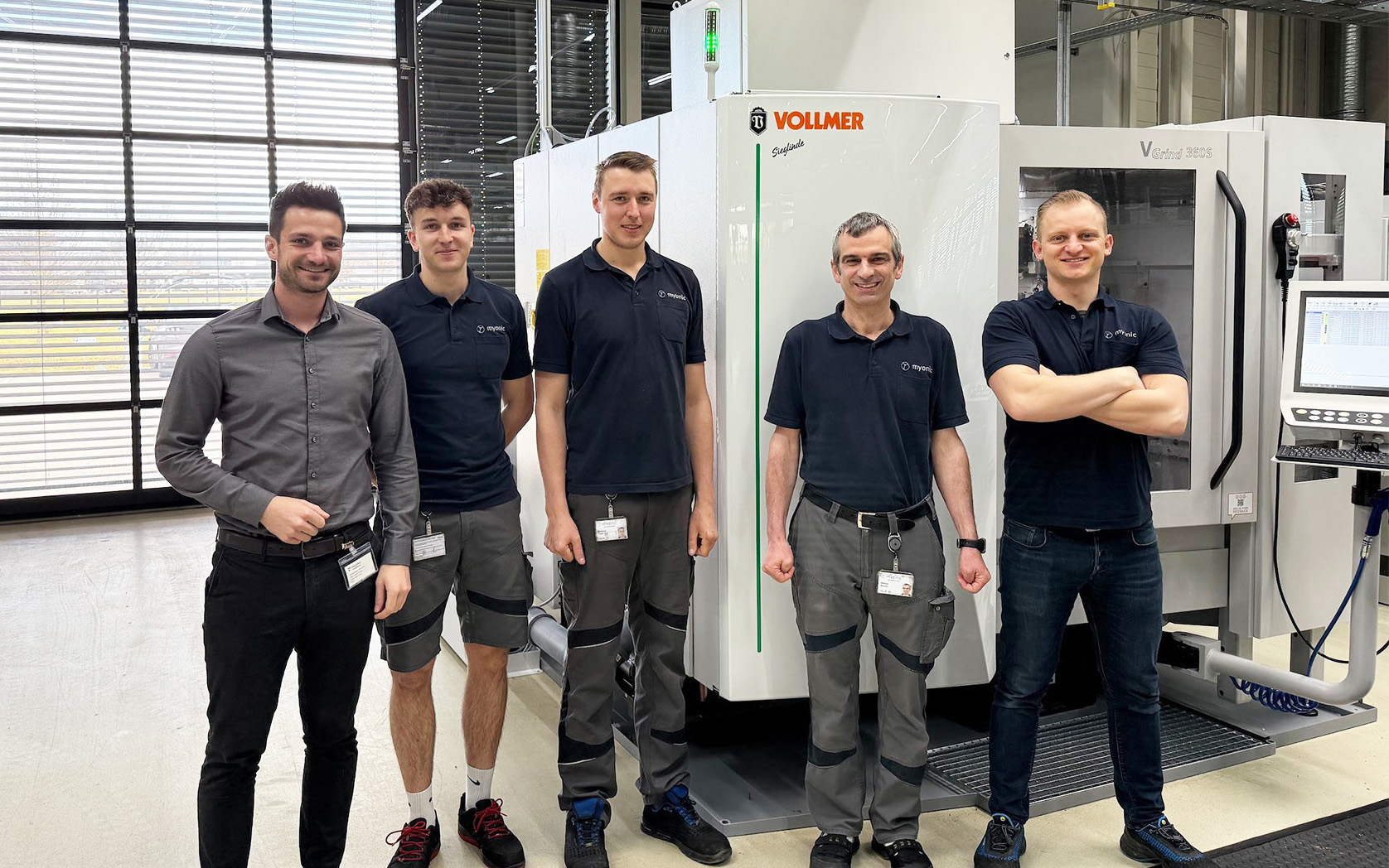 The Biberach-based sharpening specialist Vollmer had to travel less than 50 kilometres to deliver the VGrind 360S grinding machine to Myonic. The proximity of the two German world market leaders was one of the reasons why Myonic decided in favour of the VGrind 360S. Added to this is the sophisticated technology paired with simple operation. The basis for the machine’s precise sharpening processes are two vertically configured grinding spindles, which enable efficient multi-level machining and therefore eliminate problems related to fixed and floating bearings that are otherwise typical of machines. In addition, the grinding wheel set at the pivot point of the C axis and the wear-free linear induction motors on the X, Y and Z axes ensure repeatable and stable tool production at all times. Combined with the HP 170 pallet magazine, which can hold up to 900 blanks, Myonic can use the VGrind 360S in unmanned operation around the clock.