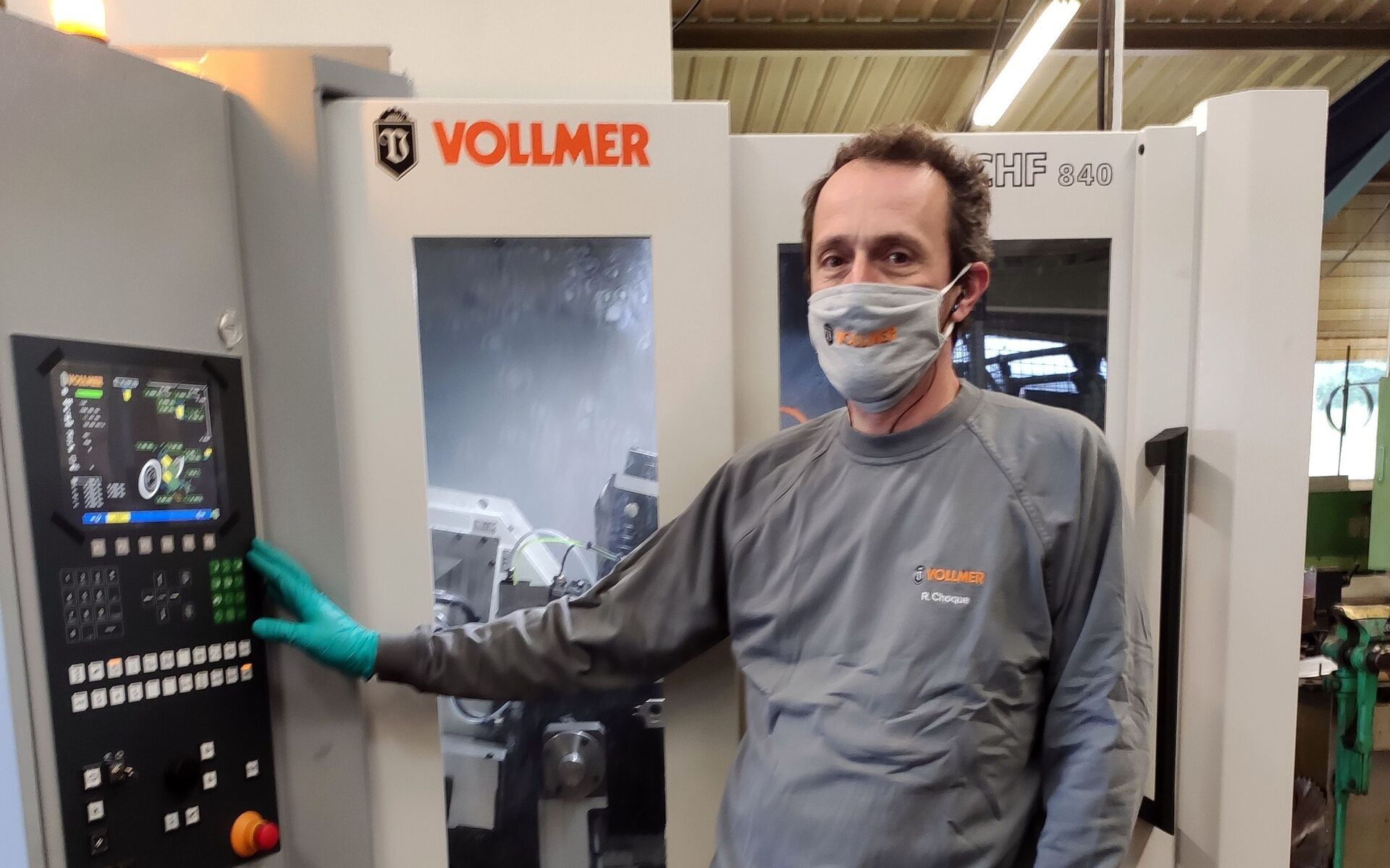 It is March 2020, the coronavirus has arrived in Europe and is paralysing most countries: lockdown even in France with travel restrictions, closed hotels and restaurants and corresponding hygiene regulations. A turbulent time for all companies - including VOLLMER France. It was only in February that the team around subsidiary manager Pierrick Berthou delivered a new machine CHF 840 to the customer Affûtage 43 and promised him that the machine would be put into operation as soon as possible.