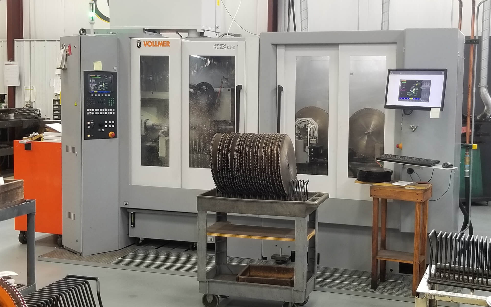 COVID may have temporarily slowed the growth timeline for pallet production, but Integrity Saw is well placed to support its new customer with its new 5-axis VOLLMER CHX 840+HS for machining the tooth faces and tooth tops in a single clamping operation. The CHX 840 is complete with the HS automation solution that enables Integrity Saw to load and process 28 blades unmanned. With a customer that will run its operations 24/7 and will require a new saw blade for every shift at every facility, the opportunity for Integrity Saw & Tool is considerable.