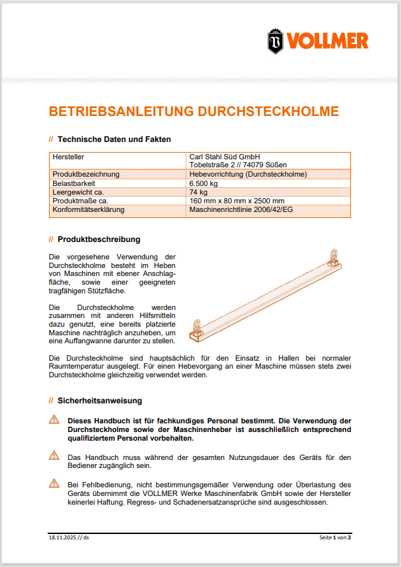 - L'utente si impegna ad utilizzare le travi di sollevamento esclusivamente per lo scopo previsto e secondo il manuale d'uso.